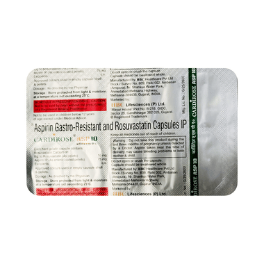 Earlier taking Cardirose ASP 10 Capsule, inform your doctor if you have liver or kidney disease, bleeding disorders, or any history of muscle problems. Also, tell your doctor if you are pregnant, planning to become pregnant, or breastfeeding. Let your healthcare team know about all other medicines you are taking, as some may interact with Cardirose ASP 10 Capsule and affect its action.