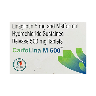 CarfoLina M 500 Tablet SR is a combination of two medicines used to help control high blood sugar levels in people with type 2 diabetes mellitus. It works by improving insulin action and reducing the amount of sugar produced by the liver.
