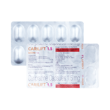 Carilift 1.5mg Capsule is an antipsychotic drug used to treat manic episodes and schizophrenia, a mood disorder. It shortens the time to recovery and prevents mania from returning.