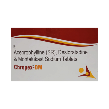 Cbropex-DM Tablet SR is a combination medicine used in the prevention of asthma. It relieves allergy symptoms such as runny nose, stuffy nose, sneezing, watery eyes, and congestion or stuffiness. It also helps relax the air passages' muscles, thus widening it and making it easier to breathe.Cbropex-DM Tablet SR is taken with or without food in a dose and duration as the doctor advises. Your dose will depend on your condition and how you respond to the medicine. You should keep taking this medicine for as long as your doctor recommends. If you stop treatment too early, your symptoms may come back, and your condition may worsen. Let your healthcare team know about all other medications you are taking, as some may affect or be affected by this medicine.