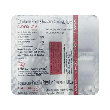 C-Doxi-CV Tablet is a combination of two medicines: Cefpodoxime and Clavulanic acid. This medication is used to treat bacterial infection. This medication works by killing the harmful bacteria that cause infection.