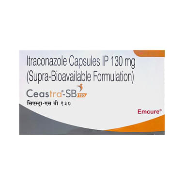 Ceastra SB 130mg Capsule is used to treat fungal infections caused by Trichophyton spp., Microsporum spp., and Epidermophyton floccosum. The infections caused could be ringworm infection, infection of feet, or infection in groin and buttocks. This medicine also treats persistent infection of fingernails and toenails, persistent candida (yeast) infections of vagina or candida (yeast) infections of the mouth or throat in patients with lower resistance to disease. It is also used in the treatment of cryptococcal infection and infections caused by histoplasma, aspergillus and blastomyces.