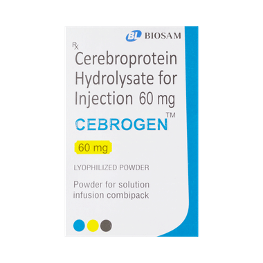 Cebrogen 60 mg Injection is given under the supervision of a healthcare professional only. You may take it at the same time each day to maintain consistent level of medicine in the blood. If you miss any dose, take it as soon as you remember. Do not skip any doses and finish the full course of treatment even if you feel better. It is important that this medication is not stopped without talking to doctor. Do not take this medicine if you are suffering from epilepsy or severe kidney problem.