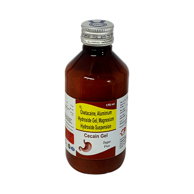 Cecain Gel Sugar Free is a combination of three medicines: oxetacaine, aluminium hydroxide, and milk of magnesia. It is used in the treatment of acidity, heartburn, and stomach ulcers. Oxetacaine is a local anesthetic that provides relief from pain due to ulcers or acidic injury in the stomach. Aluminium hydroxide and milk of magnesia are antacids that are used together to relieve heartburn, acidity, and upset stomach. They may be used to treat the symptoms in patients with peptic ulcer, gastritis, esophagitis, or gastric hyperacidity (too much acidity in the stomach).