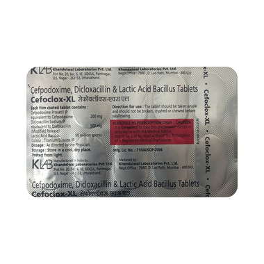 Cefoclox XL Tablet is a combination medicine. It is prescribed to treat various types of bacterial infections. It fights against the microorganisms to prevent the growth and further spread of the infection. It also prevents diarrhea which may occur as a side effect of this medicine.