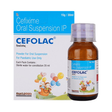 Cefolac 50mg Oral Suspension is an antibiotic medicine. It is commonly given to children to treat a wide range of bacterial infections targeting the ear, eyes, nose, throat, lungs, skin, gastrointestinal tract, and urinary tract. It can also be used in treating uncomplicated typhoid fever in children and adolescents.