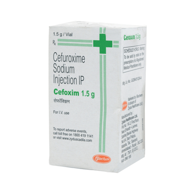 Cefoxim 1.5gm Injection is an antibiotic medicine used to treat bacterial infections in your body. It is effective in infections of the lungs (e.g. pneumonia), ear, throat, nasal sinus, urinary tract, skin, soft tissues, bones, and joints. It is also used to prevent infections during surgery.Cefoxim 1.5gm Injection is given as a drip (intravenous infusion) or as an injection directly into a vein or a muscle under the supervision of a healthcare professional. Your doctor will decide the correct dose for you. You should use this medicine regularly at evenly spaced intervals as per the schedule prescribed by your doctor. Do not skip any doses and finish the full course of treatment even if you feel better. Stopping the medicine too early may lead to the infection returning or worsening.