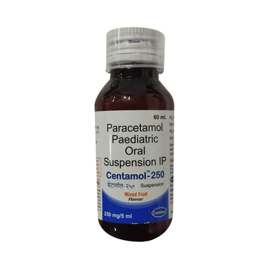 Find out detailed description, uses, directions of use, side effects, warnings and precautions, frequently asked questions about Centamol 250mg/5ml Suspension Mixed Fruit