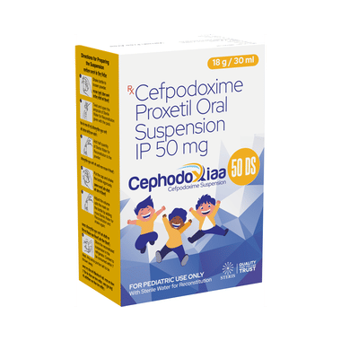 Cephodoxiaa 50 DS Oral Suspension is an antibiotic medicine used to treat bacterial infections in your body. It is effective in infections of the lungs (e.g., pneumonia), urinary tract, ear, nasal sinus, and throat. It kills bacteria, which helps to improve your symptoms.