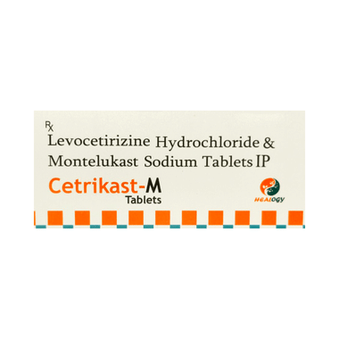 Cetrikast-M Tablet is a combination medicine used in the treatment of allergic symptoms such as runny nose, stuffy nose, sneezing, itching, swelling, watery eyes, and congestion or stuffiness. It also reduces inflammation in the airways and makes breathing easier.
