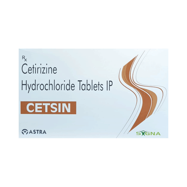 Cetsin Tablet belongs to a group of medicines called antihistamines. It is used to treat various allergic conditions such as hay fever, conjunctivitis and some skin reactions, and reactions to bites and stings. It relieves watery eyes, runny nose, sneezing, and itching.