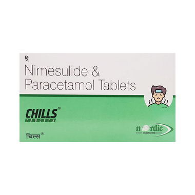 Chills Tablet is a combination of two medicines: Nimesulide and Paracetamol. This medication helps in relieving the pain and inflammation. It works by lowering the levels of chemical substances in the body that cause pain and inflammation.