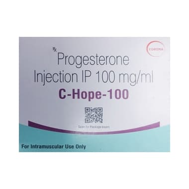 C-Hope 100 Injection contains progesterone, which is a natural female sex hormone. It is used to treat menstrual and pregnancy-related issues that are caused by hormonal imbalances. It may also be prescribed along with estrogen as a part of hormonal replacement therapy for preventing endometrial hyperplasia (thickening of the lining of the uterus).