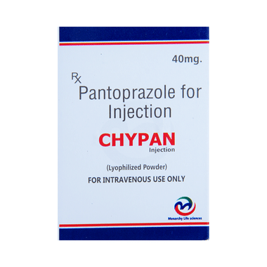 Chypan Injection is also used to prevent stress ulcers in seriously ill patients and is administered before anesthetic medication to help prevent aspiration-related complications. It belongs to a class of medicines known as proton pump inhibitors (PPIs). This medicine is administered into a vein by a healthcare professional and will only be given to you if your doctor thinks that an injection is more suitable for you at the moment than a tablet. The dose will depend on your underlying condition and how you respond to the medicine. Your doctor will decide the duration of treatment but you should keep on taking it as prescribed, even if your symptoms disappear quickly. You can increase the efficiency of the treatment by eating smaller meals more often and avoiding caffeinated drinks (like tea and coffee), and spicy or fatty foods.