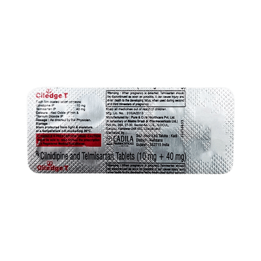 Ciledge T 10mg/40mg Tablet may be taken on an empty stomach or along with food. However, it is better to take it regularly at a fixed time each day, as prescribed by your doctor. The dose will depend on your condition and how you respond to the medicine. It is important to keep taking this medicine even if you feel well. By lowering your blood pressure, it is reducing your risk of heart attack or stroke, so do not stop taking it unless your doctor tells you to. You can help this medication work better by making a few changes to your lifestyle, such as keeping active, stopping smoking, and eating a low salt and low-fat diet.