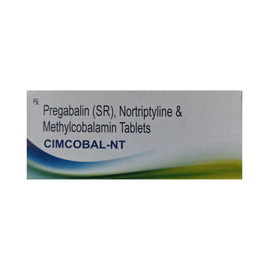 Cimcobal-NT Tablet SR is a combination of three medicines: pregabalin, nortriptyline, and methylcobalamin. This medicine is useful in the treatment of nerve pain (neuropathic pain). This medicine calms the damaged or overactive nerves by acting on brain, thereby decreasing the pain sensation. It also helps in the regeneration of damaged nerves in the body.