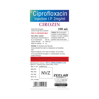 Cirozin Injection should be used in the dose and duration as advised by your doctor. It may be taken with or without food, preferably at a fixed time. Avoid skipping any doses and finish the full course of treatment even if you feel better. Do not take a double dose to make up for a missed dose. Simply take the next dose as planned.