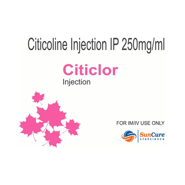 Citiclor Injection is a medicine used in the treatment of stroke, head injury, Alzheimer's disease and memory loss (dementia) in Parkinson's disease. It protects the nerve cells in the brain from damage and also helps to repair the damaged nerve cells. Therefore, it improves learning and memory.Citiclor Injection is administered as an injection under the supervision of a healthcare professional and should not be self administered. It is given in cases where oral administration is not possible. Take this medicine in the dose and duration as advised by your doctor and if you have missed a dose, take it as soon as you remember.