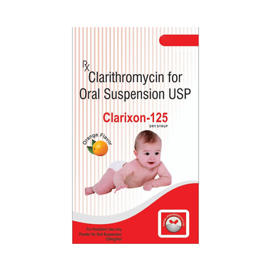 Clarixon 125 Dry Syrup Orange is an antibiotic medication. It is given to children to treat a wide range of bacterial infections targeting the ear, throat, teeth, lungs, heart, skin, and gastrointestinal tract. It also helps treat bacterial infections that can occur in children with HIV due to their weak immune systems.