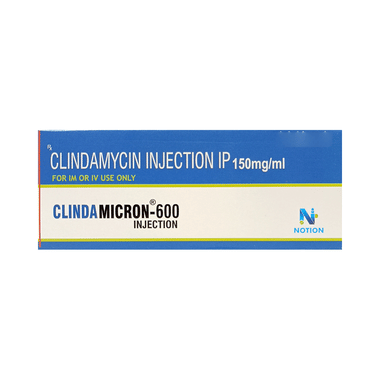 Clindamicron 600 Injection works by stopping the growth of bacteria. This helps to improve your symptoms and cure the underlying infection. It is given as a drip (intravenous infusion) or as an injection directly into a vein or a muscle under the supervision of a healthcare professional. Your doctor will decide the correct dose for you. You should use this medicine regularly at evenly spaced intervals as per the schedule prescribed by your doctor. Do not skip any doses and finish the full course of treatment even if you feel better. Stopping the medicine too early may lead to the infection returning or worsening.