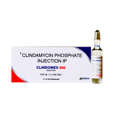 Clindomex 600 Injection works by stopping the growth of bacteria. This helps to improve your symptoms and cure the underlying infection. It is given as a drip (intravenous infusion) or as an injection directly into a vein or a muscle under the supervision of a healthcare professional. Your doctor will decide the correct dose for you. You should use this medicine regularly at evenly spaced intervals as per the schedule prescribed by your doctor. Do not skip any doses and finish the full course of treatment even if you feel better. Stopping the medicine too early may lead to the infection returning or worsening.