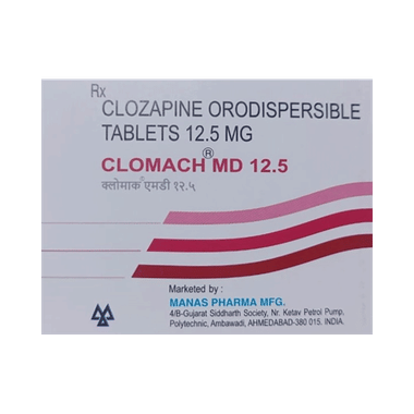 Clomach MD 12.5 Tablet is an antipsychotic drug used to treat manic episodes and Schizophrenia, a mood disorder. It shortens the time to recovery and prevents mania from returning. It is also used to reduce the risk of suicidal behavior in people with Schizophrenia.
