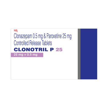 Clonotril P 25 Tablet CR is a prescription medicine used to treat depression. It is a combination medicine that works by increasing the level of chemical messengers in the brain that improve mood. It also calms the brain by decreasing the abnormal and excessive activity of the nerve cells.