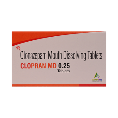 Clopran MD 0.25 Tablet is a medicine belonging to the benzodiazepine class. It is used to help control seizures and manage panic disorder. The medicine calms overactive nerve signals in the brain and reduces abnormal electrical activity, leading to fewer seizures and less anxiety or panic.