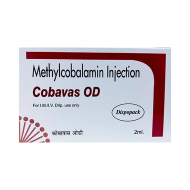 Cobavas OD Injection is a man-made form of vitamin B12. It is used to treat deficiency of vitamin B12 in the body. Vitamin B12 is important for growth, cell reproduction, blood formation, and protein and tissue synthesis. It also helps to treat anemia, fatigue, and numbness or tingling in the hands and feet.Cobavas OD Injection should be used exactly as prescribed by the doctor. Follow all directions on the prescription label and read all medication guides before use. You should use it regularly and at a fixed time each day to get the most benefit from it. This medicine may be only part of a complete program of treatment that also includes making changes to your diet and taking other medicines and supplements. Absorb about the foods you should eat to make sure you get enough vitamin B12 in your diet.