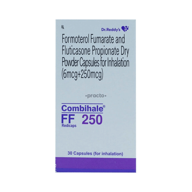 Combihale FF 250 Redicaps is used in the treatment of asthma (wheezing and shortness of breath) and chronic obstructive pulmonary disorder (a lung disorder in which the flow of air to the lungs is blocked). It relaxes the muscles of the air passages and makes it easier to breathe.Your doctor will tell you how often to use this inhaler and prescribe the lowest dose needed to keep your asthma under control. This medicine must be used regularly, even when you do not have symptoms, as it helps prevent breathing problems and reduces the risk of asthma flare-ups. The full benefit may take a few weeks of regular use. This inhaler is not intended to relieve sudden asthma symptoms, always keep a fast-acting reliever inhaler available for immediate relief. Correct inhaler technique is important to ensure the medicine reaches the lungs and works effectively.