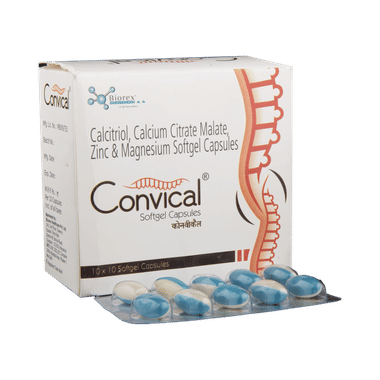 Convical Capsule is a nutritional supplement that consists of various vitamins and minerals. When you lack these nutrients in your body, which cannot be recovered even with the food sources, this medicine helps replenish these deficient levels. This medicine also contains calcium in high amounts which helps improve calcium levels in your body.