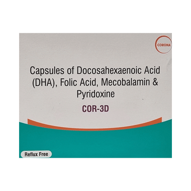 Cor-3 D Capsule is a nutritional supplement that consists of various vitamins. When you lack these nutrients in your body, which cannot be recovered even with the food sources, this medicine helps replenish these deficient levels.