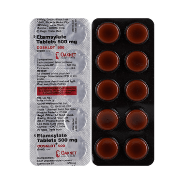 Cosklot 500 Tablet is a hemostatic medication. It acts by increasing the ability of platelets to stick together and helps in the formation of blood clots. It also helps in controlling bleeding from capillaries which are tiny blood vessels. Take it in the exact dose and duration as prescribed by the doctor to get the maximum benefits.