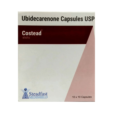 You should take Costead Capsule only if doctor has advised you. Costead Capsule has a beneficial role when taken with other medicines in patients with heart failure, angina, high blood pressure, Parkinson’s disease, and migraine. It may also be advised in patients with Coenzyme Q10 deficiency, HIV/AIDS or in patients taking adriamycin. Costead Capsule is an additional therapy to the prescribed treatment. Do not substitute Costead Capsule for actual treatment required for these particular diseases.