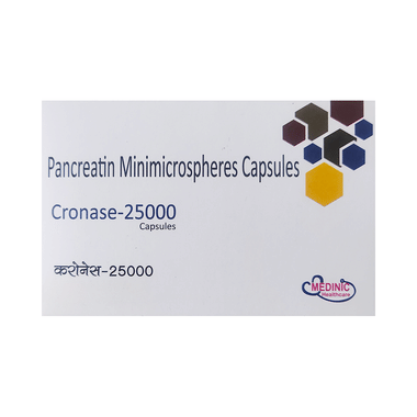 Cronase 25000 Capsule is used to treat pancreatic enzyme deficiency. It is a pancreatic enzyme supplement that helps in digestion. This medicine also reduces stool frequency and stomach discomfort.