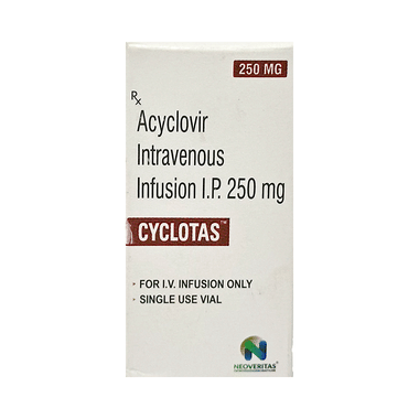 Cyclotas Infusion is an antiviral medicine effective against herpes simplex and varicella zoster viruses. It does not cure infections caused by these viruses but helps to minimize the symptoms and shorten the duration of infection. It does not remove the viruses from the body but prevents the viruses from dividing and spreading.
