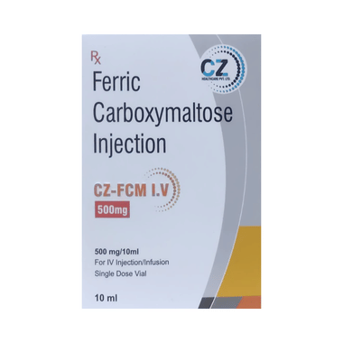 CZ-FCM I.V 500mg Injection is an iron replacement medicine. It is used to treat a type of anemia where you have fewer amount of red blood cells due to insufficient iron in your body (iron-deficiency anemia). Iron is needed to produce the red blood cells that carry oxygen around your body.