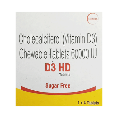 D3 HD 60K Tablet should be taken as directed by your doctor. It is best taken with or after food, as this helps your body absorb it, and you should take it regularly to get the most benefits. If you are using it to treat osteoporosis, you will also be prescribed other medicines. This medicine may be only part of a complete treatment program that includes making changes to your diet and taking calcium and vitamin supplements. Absorb about the foods you should eat to ensure you get enough calcium and vitamin D.