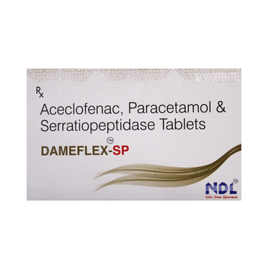 Dameflex-SP Tablet is a combination medicine that relieves muscle, joint, and postoperative pain. It effectively alleviates pain and inflammation in conditions like rheumatoid arthritis, ankylosing spondylitis, and osteoarthritis.