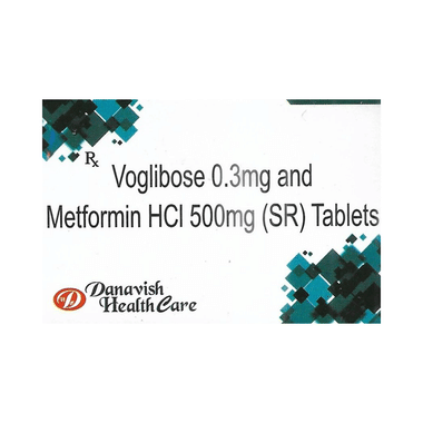 Find out detailed description, uses, directions of use, side effects, warnings and precautions, frequently asked questions about Danavish Metformin+Voglibose 500mg/0.3mg Tablet SR
