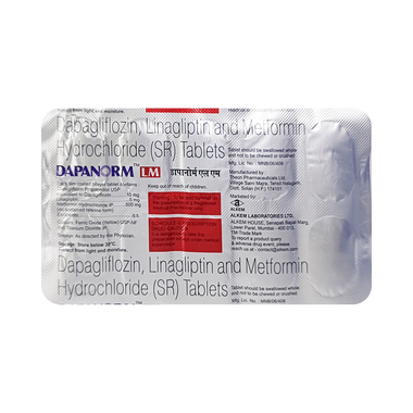 Find out detailed description, uses, directions of use, side effects, warnings and precautions, frequently asked questions about dapaNORM LM 10mg/5mg/500mg Tablet