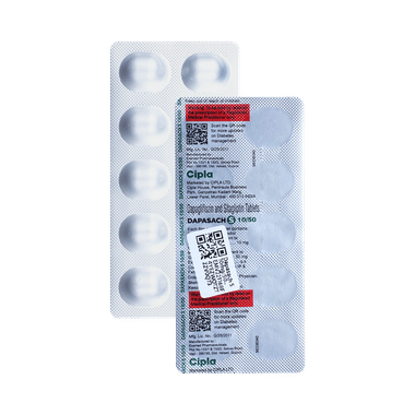 Find out detailed description, uses, directions of use, side effects, warnings and precautions, frequently asked questions about Dapasach S 10mg/50mg Tablet