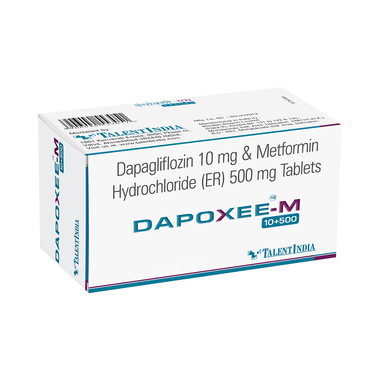 Dapoxee-M 10+500 Tablet ER may be taken with food. Take it at the same time every day; this will help you remember to take it. Your doctor will decide the dose. Do not stop taking it without asking your doctor. If you do, your blood sugar levels may increase and put you at risk of serious complications like kidney damage and blindness. This medicine is only part of a treatment program that should include a healthy diet, regular exercise, and weight reduction as advised by your doctor.