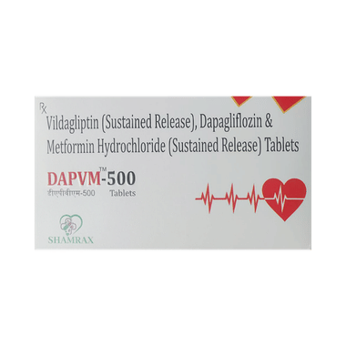 Dapvm 500 Tablet SR is a combination medicine that helps control blood sugar levels. This medicine is used together with diet and exercise to improve blood sugar control in adults with type 2 diabetes mellitus. It helps in the proper utilization of insulin, thereby lowering the blood sugar level.