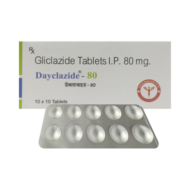 Dayclazide 80mg Tablet may be prescribed alone or along with other medicines. It should be taken with food. Take it regularly at the same time each day to get the most benefit. Your doctor will decide what dose is best for you, which may change from time to time according to how it works. Continue using this medicine as prescribed, even if you feel fine or your blood sugar levels are stable. If you stop it without consulting your doctor, your blood sugar levels could rise and put you at risk of kidney damage, blindness, and nerve problems.