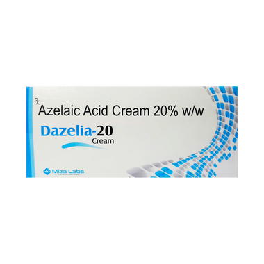 Dazelia 20 Cream is used in the treatment of acne (pimples). It effectively relieves symptoms such as lumps, redness, and swelling associated with different forms of acne. It works by killing acne-causing bacteria.