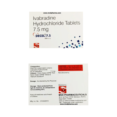Decel 7.5 Tablet is a heart medicine. It belongs to a class of medicine known as hyperpolarization-activated cyclic nucleotide-gated (HCN) channel blockers. It works by slowing the heart rate. This helps the heart to pump more blood through the body each time it beats.