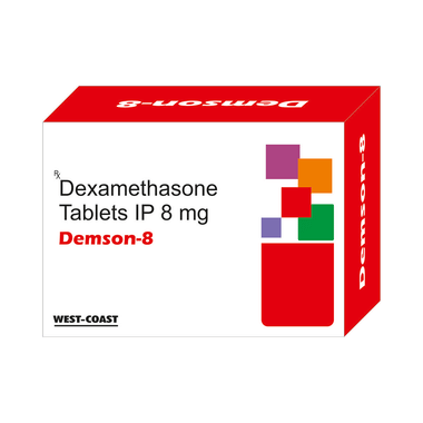 Demson 8 Tablet provides relief from swelling, redness, pain, and itching in the affected area by preventing the release of substances that cause inflammation. It should be taken with food to avoid stomach upset. Taking the medicine regularly at the right times increases its effectiveness. It is important to keep taking the medicine regularly until your doctor tells you it is safe to stop.