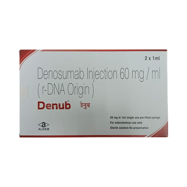 Denub 60mg Injection (1ml Each) is available as an injection and is given by a healthcare professional. It is given once in 6 months. Your doctor may also advise you to take calcium and vitamin D while taking Denub 60mg Injection (1ml Each).