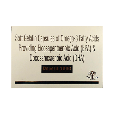 Depozit 1000 Soft Gelatin Capsule is used to manage nutritional deficiencies and help lower very high triglyceride (a type of fat in your blood) levels in adults. It is an essential nutrient with strong antioxidant properties, supporting the overall health of the heart, blood vessels, brain, and eyes, along with providing several other health benefits.